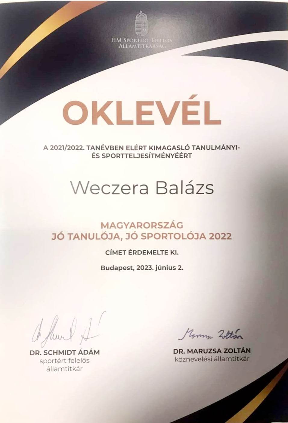 wpadmin2023.06.08.Hirek Magyarország Jó Tanulója, Jó Sportolója Weczera Balázs 7.d. osztályos tanulónk elnyerte MAGYARORSZÁG JÓ TANULÓJA, JÓ SPORTOLÓJA címet. Az elismeréshez gratulálunk, büszkék vagyunk Balázsra! 2023. június 08. Gombár Erzsébet